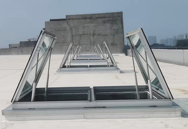 此類天窗有三種控制方式:通用控制方式、智能控制方式、智能網(wǎng)絡(luò)控制方式。以上控制方式均可消防聯(lián)動(dòng)控制,與消防報(bào)警連接。適用于采光為主必要時(shí)開(kāi)啟的大型生產(chǎn)車間、大廳、體育館等。