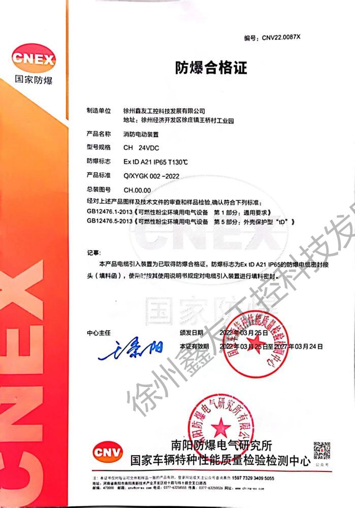 電動螺桿開窗機防爆合格證書(粉塵環境下)