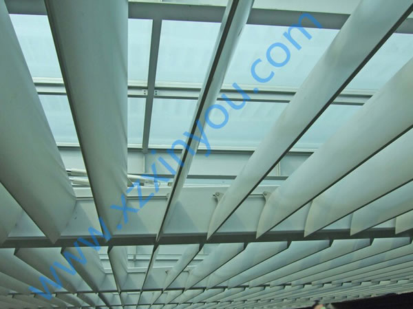 中空梭型百葉窗遮陽板采用中空結構,具有強度高、跨度大的特點,通過與玻璃幕墻的配合,可實現(xiàn)遮陽、采光、裝飾建筑物的效果。 梭型百葉可以橫向、豎向安裝(或固定葉片),通過電機帶動葉片的旋轉(0°~120°),從而改變室內采光效果,達到遮陽節(jié)能的目的。葉片尺寸和顏色可以根據客戶要去定制。